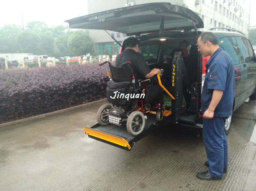商務(wù)車載型無障礙升降平臺(tái)采用鋼結(jié)構(gòu)平行四邊形結(jié)構(gòu),液壓驅(qū)動(dòng),結(jié)構(gòu)新穎,外型美觀,適用于多種類型車輛。平臺(tái)前后各裝有安全翻板以防輪椅車在提升過程中滑落,平臺(tái)設(shè)有線控按鈕,便于使用者方便操作,在汽車內(nèi)部裝有手動(dòng)控制手柄,在升降平臺(tái)斷電或電控故障時(shí)通過手柄人工機(jī)械操作平臺(tái)升降。設(shè)備收藏于車廂尾部,體積小,不影響車輛使用.本產(chǎn)品結(jié)構(gòu)新穎,外形美觀,適用于多類型的商務(wù)車、面包車、輕客等。