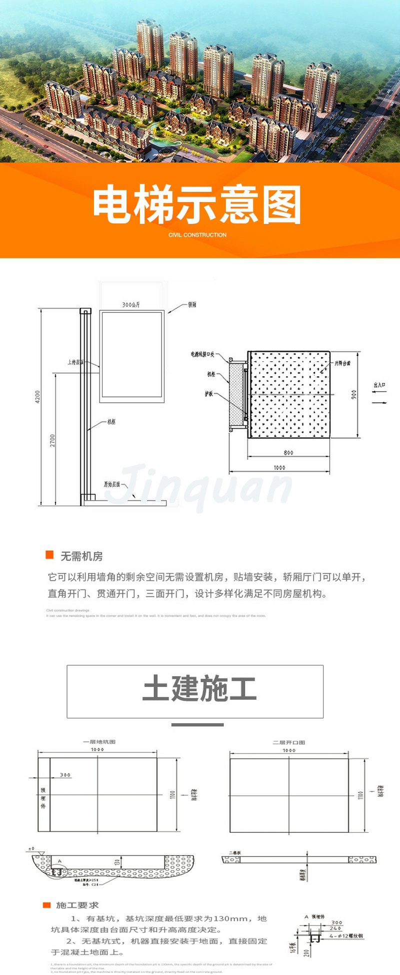 家用電梯安裝時不需要機房和基坑,最小安裝占地面積僅需一平方米左右。基本款式分為平臺式,轎箱式和井道式。家用電梯可安裝在專用電梯井道內,或安裝在環繞樓梯的中間,也可以安裝在中空的大廳或房間;如沒有中空的大廳或房間,也可以在樓板上開出合適的孔;當然,室內如實在沒有合適空間,也可以加上井道安裝在室外。