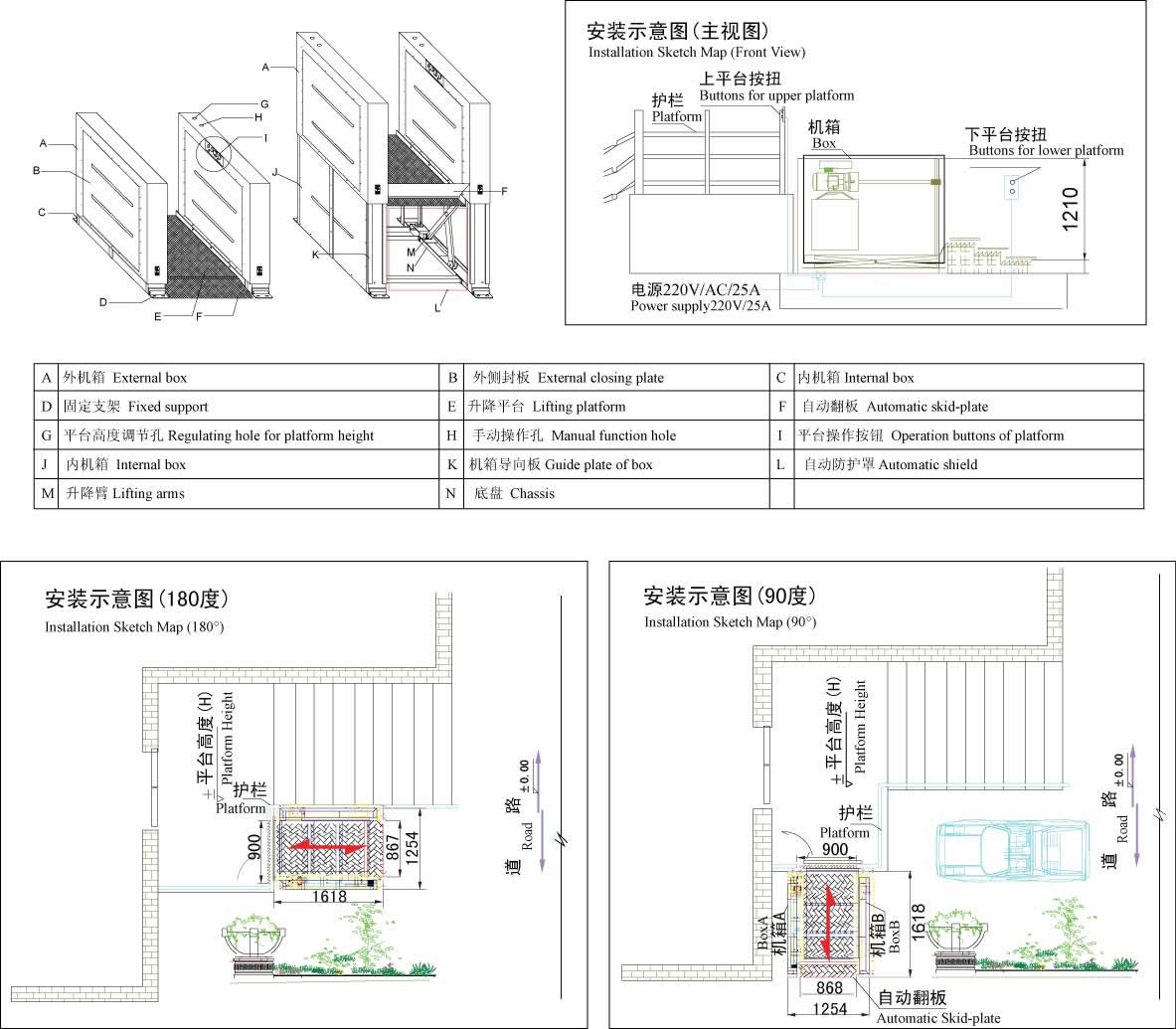 手動操作: 手動液壓閥打開,或手動旋動螺桿時升降底板能手動下降